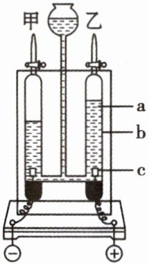 (填“a”“b”或“c”)处。(2)甲、乙两支玻璃管中生成气体的体积比约为