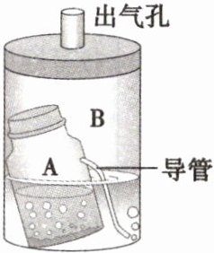 (2)如图是一台简易制氧机,$A$瓶中装有“茶垢净”、二氧化锰和水,氧气可从$B$瓶盖子上的出气孔排出,供人呼吸。$A瓶的导管伸入B$瓶水中的目的是