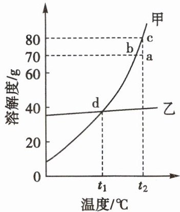 g。(2) 在$0~t^{\circ}C$范围内,这两种物质中溶解度较小的是