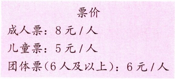 4位家长和2名儿童买团体票,2名儿童买儿童票:(4+2)×6+(4-2)×5=46(元)