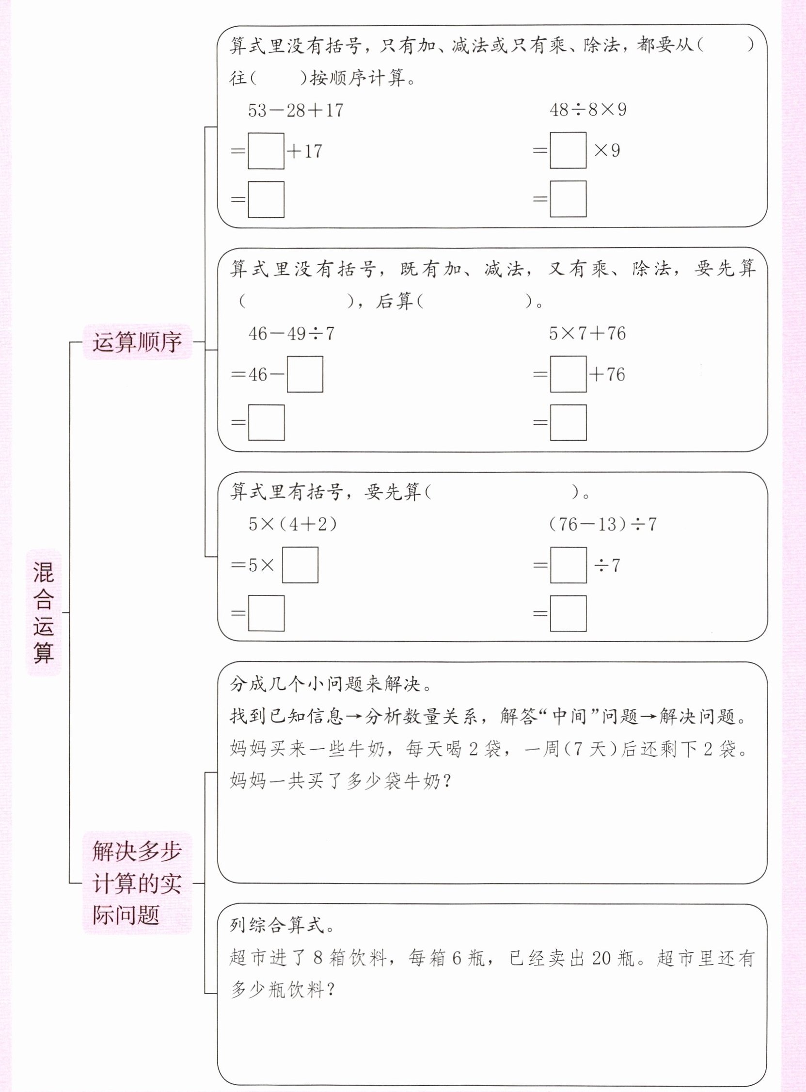 $- 算式里没有括号,既有加、减法,又有乘、除法,要先算(