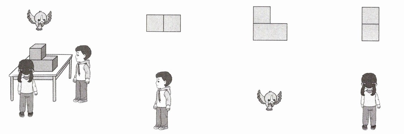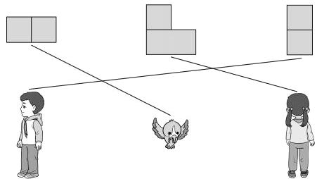 2. 下面右边的三幅图分别是谁看到的?连一连。