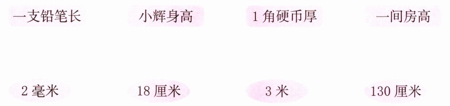 一支铅笔长 小辉身高 1角硬币厚 一间房高