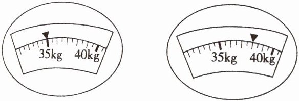4. 小林想知道自己家小狗的体重,但是小狗不配合站在体重秤上。于是他先称了自己一次,再抱着小狗站在秤上称了一次。根据下图显示,你能算出小狗的体重吗?