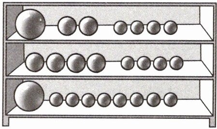 体育用品柜里放有大、中、小三种球,1 个小球重 150 克,每层的质量相等。大、中球每个各重多少克?