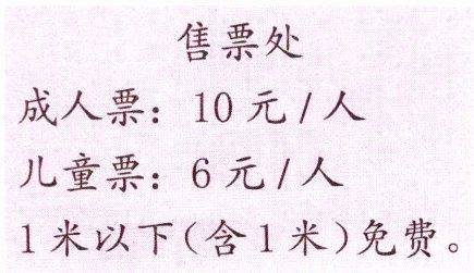 (5) 爸爸、妈妈带着明明和妹妹一起去海洋公园参观。如果明明身高 $134$ 厘米,妹妹身高 $103$ 厘米,明明一家需要花多少元买门票?