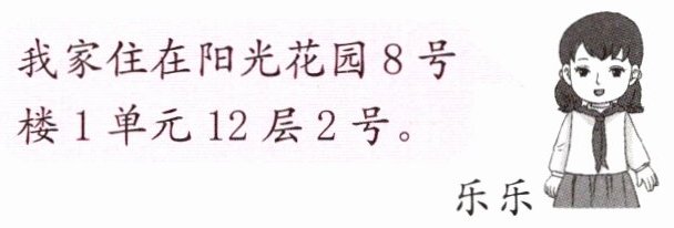 2. 阳光花园为每家住户编了门牌号。如“01-3-0502”表示1号楼3单元5层2号。你知道阳阳和乐乐家的门牌号吗?