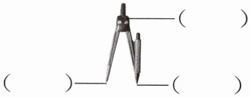 1. 圆规是用来( )的工具,也可以用它量出同样长度的( )。请在右图中填出圆规各部分的名称。