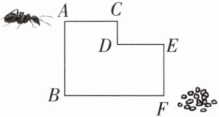 4. 用圆规量一量蚂蚁从点 $ A $ 到点 $ F $ 的两条路线,哪条路线比较长?