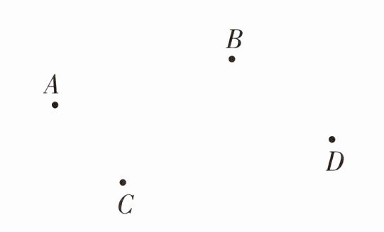 画线段 $ AC $:从点 $ A $ 到点 $ C $ 画一条直线段,连接两点。