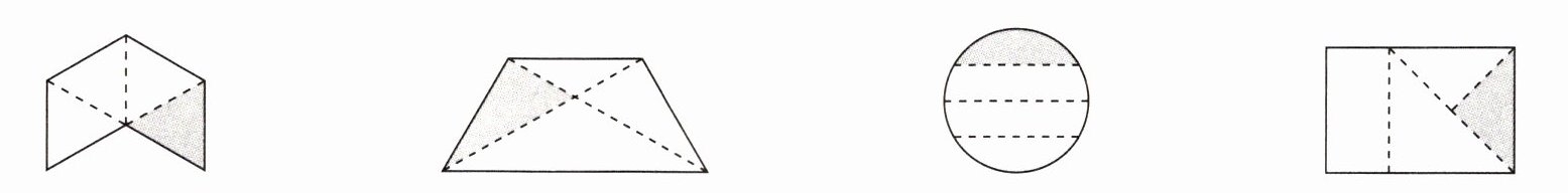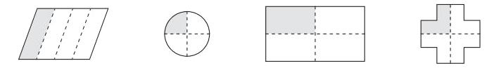 分别表示出下面每个图形的$\frac{1}{4}$,并涂上颜色。