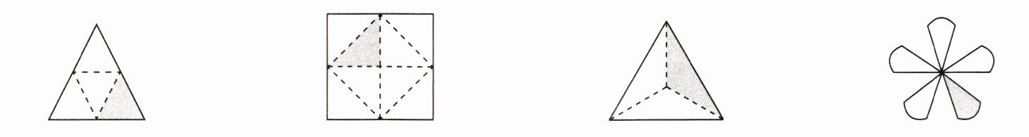 3. 下面各图中的涂色部分是整个图形的几分之几?请用分数表示出来。
