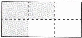 )块,涂色部分就占整个图形的$\frac{5}{6}$了。(2) 把一张长方形纸对折两次,打开后,每一部分占这张纸的$\frac{(