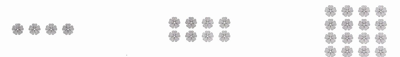 2. 先分别圈出下面各图中的$\frac{3}{4}$,再数一数圈住部分各有多少朵花。