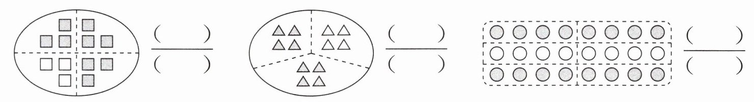 (1) 用分数表示下面各图中的涂色部分。