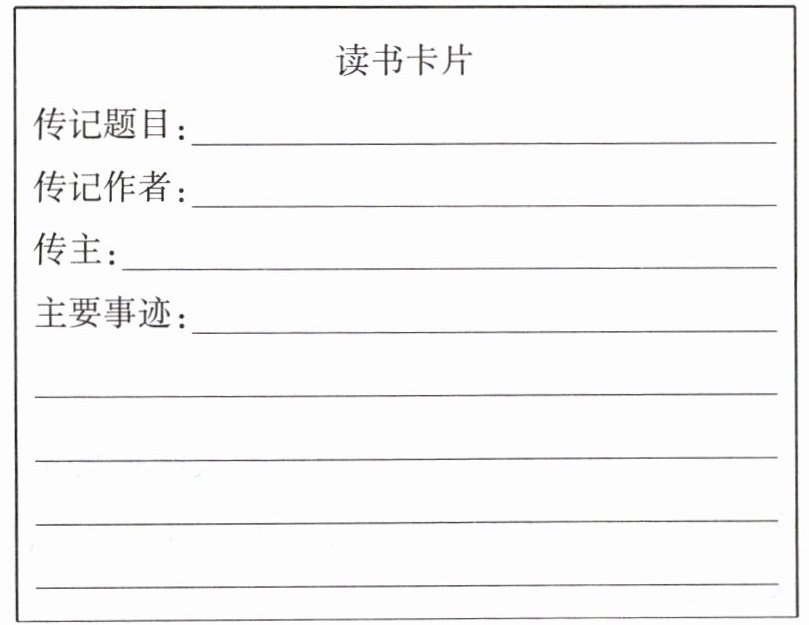 十、挑选一本(一篇)自己最喜欢的人物传记,重读一遍,填写下面的资料卡片。