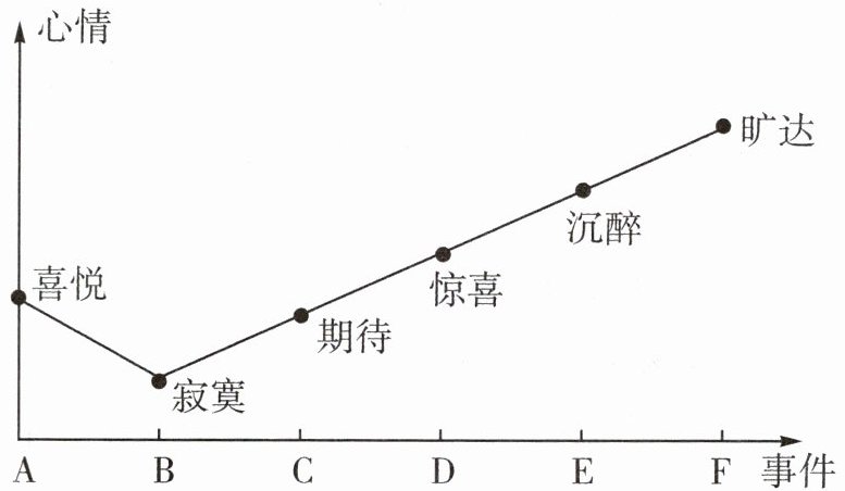 3. 下面的曲线图体现了《记承天寺夜游》中苏轼的心情变化,请根据文章内容,将与心情对应的句子写在横线上。