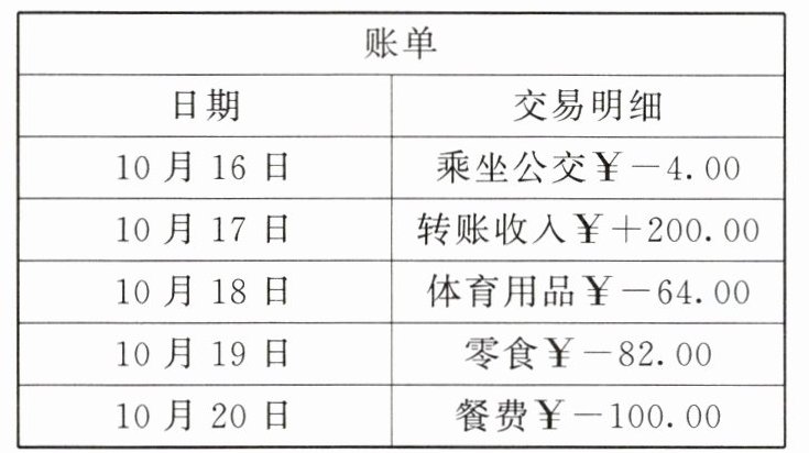 7. (数学应用)小明妈妈用网银钱包连续支付五笔交易如下,已知小明妈妈五笔交易前网银钱包的余额是 860 元,则五笔交易后网银钱包的余额为