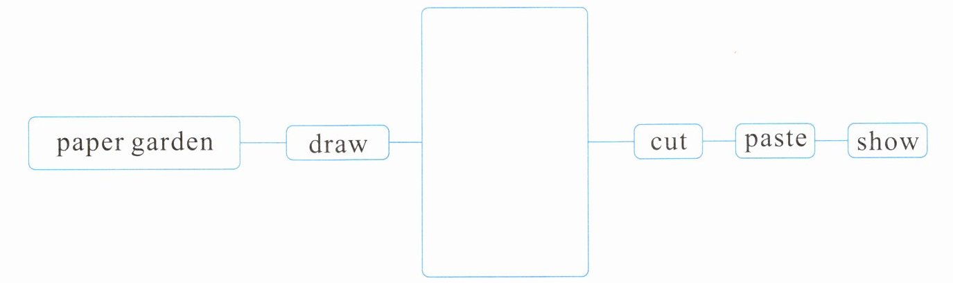 Ⅲ Make a paper garden. 选用活动二中的部分词汇完成流程图,再将作品粘贴在方框内。