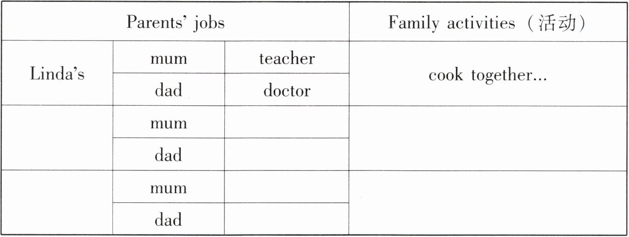 | | Parents’ jobs | Family activities (活动) |