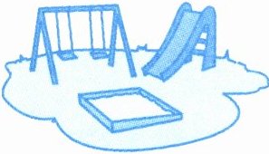 1. There is a playground. 2. There is a hospital. 3. There is a park.