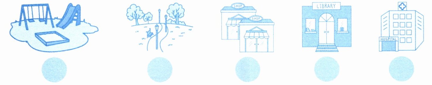 |a. two shops|b. playground|c. hospital|d. park|e. library|