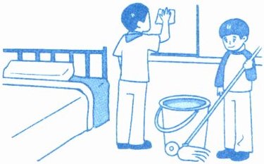 | 2. Those students are so busy! | B. 陈杰正在铺床。 |