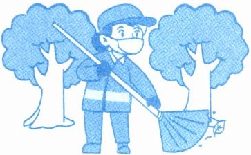 This is Mrs Zhang. She's a cleaner. She cleans our community. Look! She is cleaning the park.
