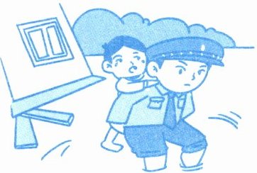 This is Mr Wang. He's a police officer. He often helps a lot of people. Look! He's helping a small boy now.
