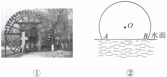 10. 如图①,水车又称孔明车,是我国最古老的农业灌溉工具,是珍贵的历史文化遗产. 如图②,圆心 O 在水面上方,且⊙O 被水面截得的弦 AB 长为 8 m,半径为 5 m,则圆心 O 到水面 AB 的距离为______m.