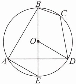 8. 如图,四边形 $ABCD$ 是 $\odot O$ 的内接四边形,$BE$ 是 $\odot O$ 的直径,连接 $AE$。若 $\angle BCD = 2\angle BAD$,连接 $OD$,则 $\angle DOE$ 的度数是______.