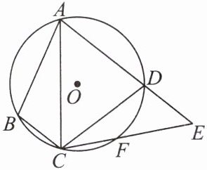 7. 如图,四边形 $ABCD$ 内接于 $\odot O$,$F$ 是 $\overset{\frown}{CD}$ 上一点,且 $\overset{\frown}{DF} = \overset{\frown}{BC}$,连接 $CF$ 并延长交 $AD$ 的延长线于点 $E$,连接 $AC$。若 $\angle ABC = 105^{\circ}$,$\angle BAC = 25^{\circ}$,则 $\angle E = ( )$