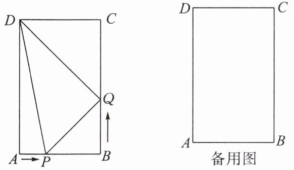 13. 如图,在矩形$ABCD$中,$AB = 6\mathrm{cm}$,$BC = 12\mathrm{cm}$,点$P从点A出发沿AB以1\mathrm{cm/s}的速度向点B$移动;同时,点$Q从点B出发沿BC以2\mathrm{cm/s}的速度向点C$移动。设运动时间为$t\mathrm{s}$。