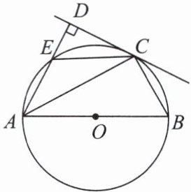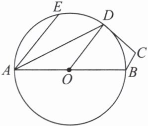11. 如图,$ AB $ 为 $ \odot O $ 的直径,$ C $ 为 $ \odot O $ 上的一点,$ AD \perp CD $ 且交 $ \odot O $ 于 $ E $,$ C $ 是 $ \overset{\frown}{BE} $ 的中点. 判断直线 $ DC $ 与 $ \odot O $ 的位置关系,并证明你的结论.