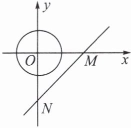 9. 如图,直线 $ y = x - 2 $ 与 $ x $ 轴、$ y $ 轴分别交于 $ M $,$ N $ 两点,$ \odot O $ 的半径为 $ 1 $,将 $ \odot O $ 以每秒 $ 1 $ 个单位长度的速度向右作平移运动. 当移动______ $ s $ 时,直线 $ MN $ 恰好与 $ \odot O $ 相切.