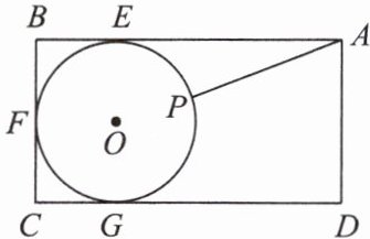 13. 如图,在矩形 ABCD 中,AB = 7 cm,BC = 4 cm,⊙O 与矩形的边 AB,BC,CD 分别相切于点 E,F,G,点 P 是⊙O 上任意一点,则线段 AP 的长度最小为______cm.