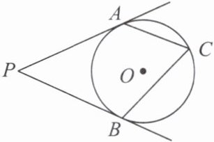 5. 如图,$PA$,$PB切\odot O于点A$,$B$,点$C是\odot O$上的一点,且$\angle ACB = 65^{\circ}$,则$\angle P$的度数为______。
