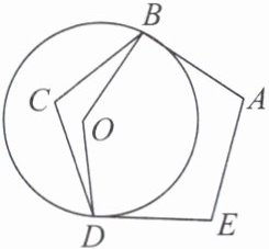 4. 如图,$\odot O与正五边形ABCDE的边AB$,$DE分别相切于点B$,$D$,则劣弧$\overset{\frown}{BD}所对的圆心角\angle BOD$的大小为______度。