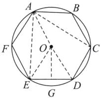 ∴正六边形ABCDEF的面积$ = 6×\frac{1}{2}×r×\frac{\sqrt{3}}{2}r = \frac{3\sqrt{3}}{2}r^2$。