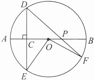12. 如图,$AB$ 是 $\odot O$ 的直径,弦 $DE$ 垂直平分半径 $OA$,$C$ 为垂足,弦 $DF$ 与半径 $OB$ 相交于点 $P$,连接 $EO$,$FO$,已知 $DE = 4\sqrt{3}$,$\angle DPA = 45^{\circ}$.