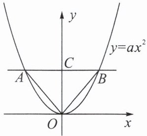 11. 如图,已知一条直线与抛物线 $ y = ax^2(a > 0) $ 相交于 $ A $,$ B $ 两点(点 $ A $ 在点 $ B $ 左侧),与 $ y $ 轴正半轴交于点 $ C $,且 $ AB // x $ 轴,$ AB = 2 $,$ \angle AOB = 60° $,求 $ a $ 的值。