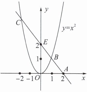 12. 如图,直线 $ AB $ 过 $ x $ 轴上的点 $ A(2,0) $,且与抛物线 $ y = ax^2 $ 相交于 $ B $,$ C $ 两点,点 $ B $ 坐标为 $ (1,1) $。