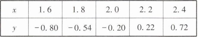 | $ x $ | $ 1.6 $ | $ 1.8 $ | $ 2.0 $ | $ 2.2 $ | $ 2.4 $ |