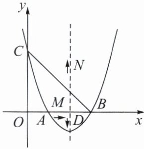 例1 如图,关于 $x$ 的二次函数 $y = x^2 + bx + c$ 的图象与 $x$ 轴交于点 $A(1,0)$ 和点 $B$,与 $y$ 轴交于点 $C(0,3)$,抛物线的对称轴与 $x$ 轴交于点 $D$.