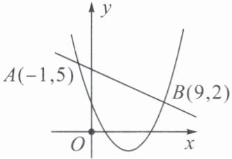 8. 如图,一次函数 $y_{1} = kx + n$ 与二次函数 $y_{2} = ax^{2} + bx + c$ 的图象相交于 $A(- 1,5)$,$B(9,2)$ 两点,则关于 $x$ 的不等式 $kx + n \geq ax^{2} + bx + c$ 的解集为( )