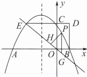 (2) 如图,点 $ P $ 是直线 $ EO $ 上方抛物线上的一动点,过点 $ P $ 作 $ y $ 轴的平行线交直线 $ EO $ 于点 $ G $,作 $ PH \perp EO $ 于 $ H $,设 $ PH $ 的长为 $ l $,点 $ P $ 横坐标为 $ m $,求 $ l $ 与 $ m $ 的函数关系式(不必写出 $ m $ 的取值范围),并求 $ l $ 的最大值;