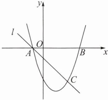 例2 如图,抛物线 $ y = x^2 + bx + c $ 与 $ x $ 轴交于 $ A(-1,0) $,$ B(3,0) $ 两点,过点 $ A $ 的直线 $ l $ 交抛物线于点 $ C(2,m) $。点 $ F $ 是抛物线上的动点,在 $ x $ 轴上是否存在点 $ D $,使得以点 $ A $,$ C $,$ D $,$ F $ 为顶点的四边形是平行四边形?如果存在,请写出所有满足条件的点 $ D $ 的坐标;如果不存在,请说明理由。