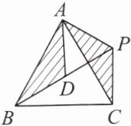 2. 如图,△ABC为等边三角形,D为△ABC内一点,△ABD经过旋转后到达△ACP的位置,则: