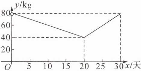 $y=\left\{\begin{array}{l} -2x+80(0<x≤20),\\ 4x-40(20<x≤30).\end{array}\right. $