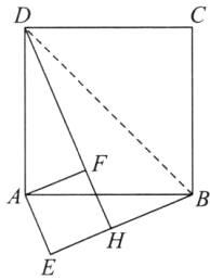 1. 如图,点E为正方形ABCD外一点,∠AEB= 90°,将Rt△ABE绕点A沿逆时针方向旋转90°得到△ADF,DF的延长线交BE于点H.